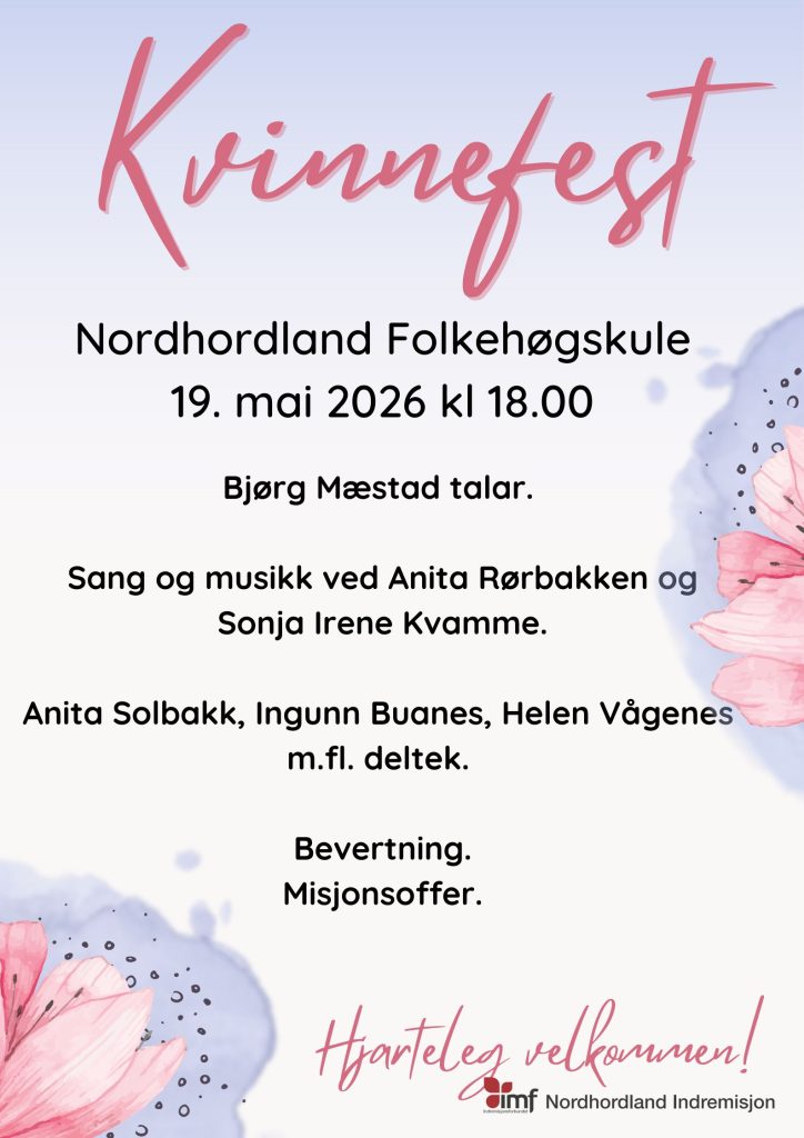 Kvinnefest 19.mai av Bjarte | jan 27, 2026 Tysdag 19.mai er alle damer velkomne på kvinnefest på folkehøgskulen.