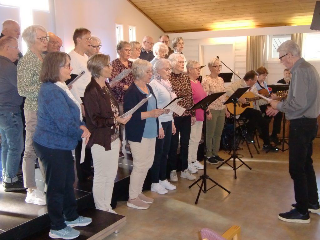 Det er ikkje alltid så stor oppslutnad om desse treffa, men denne gongen var koret Hatikva på besøk. Dei rundt 25 songarane var på scena tre gonger, og formidla bodskapen om Jesus gjennom songane sine. Og mykje tyder på at pensjonistane som kjem på desse treffa likar å syngja. Det tyder kraften i fellessangen på. «Fagert er landet», «Guds ord det er vår fedrearv», og andre songar lydde sterkt. Asle Hetlebakke heldt andakt og las frå nokre av bøkene sine, og det vart servert både påsmurde skiver og lappar med syltetøy. Så på desse treffa er det servering for både kropp og sjel.